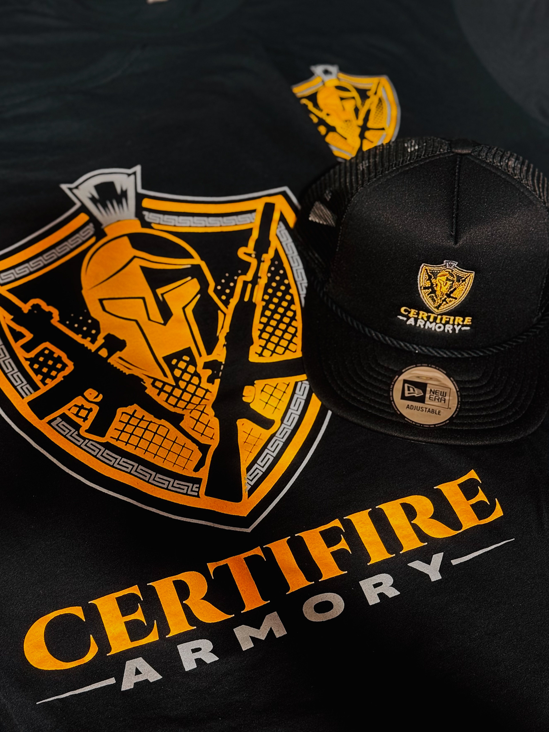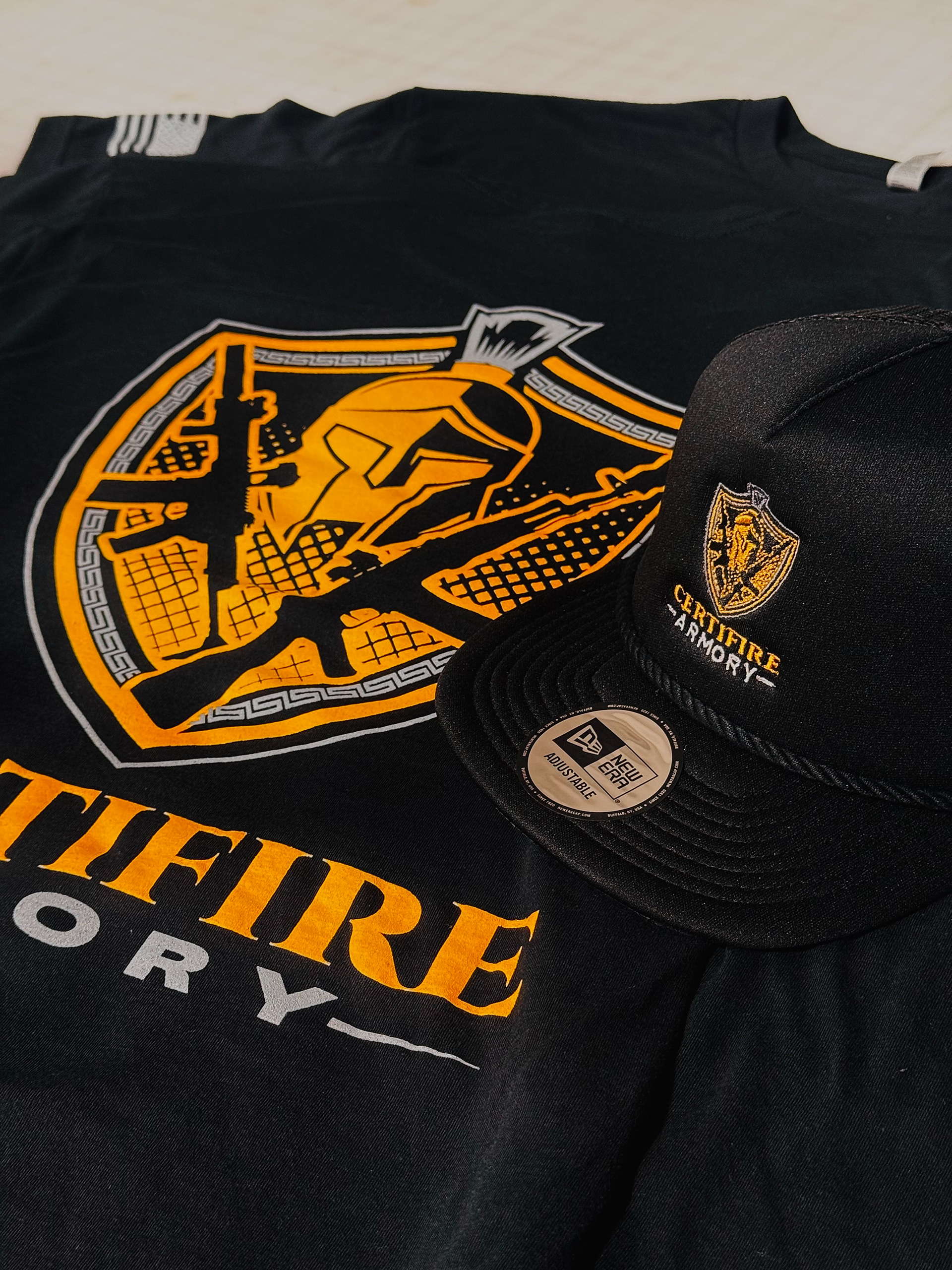Complete rebrand and merchandise design for Certifire Armory. We took their original branding and rebuilt it into a clean, professional identity that reflects precision and strength. Designed and produced premium screen-printed apparel and embroidered New Era snapback caps, bringing the brand up to retail-ready quality standards.
