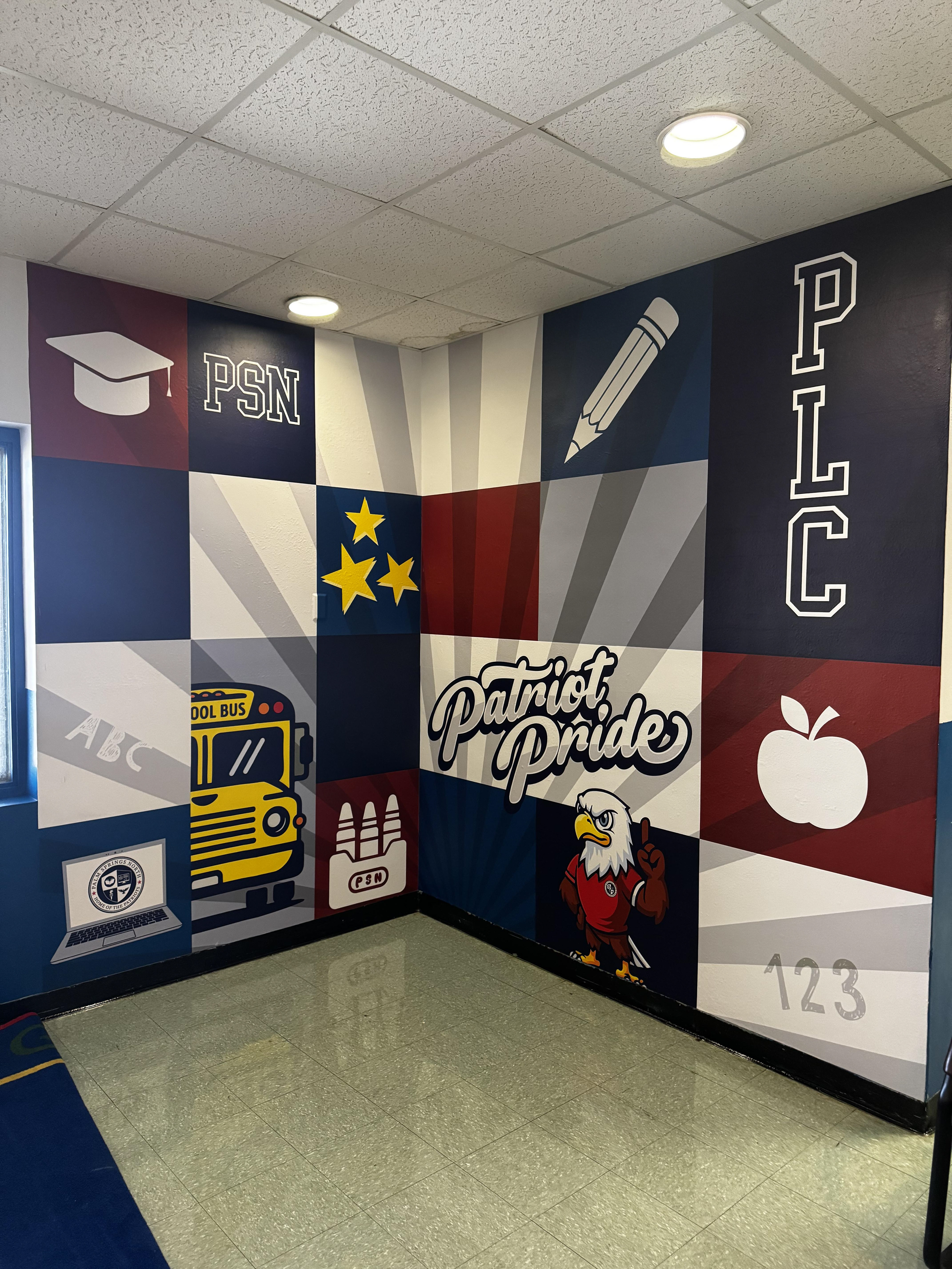 Creative direction and full rebrand for PSN K-8 Center. Designed and developed their online merch store for uniforms, club shirts, and custom school products. Worked closely with the principal and staff to create a consistent visual identity. Designed, printed, and installed custom wall and door wraps that keep the school’s message and branding unified across the campus.