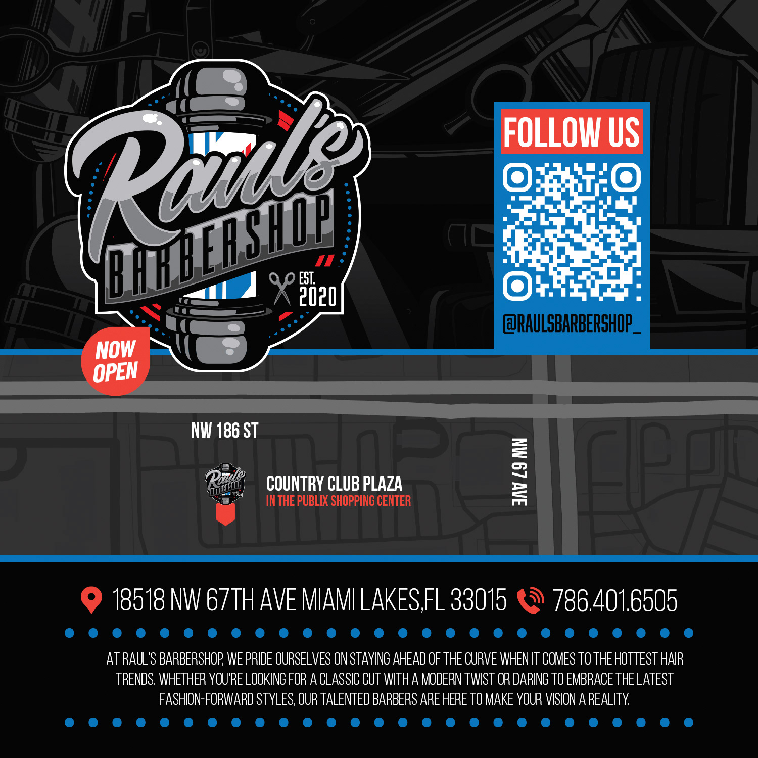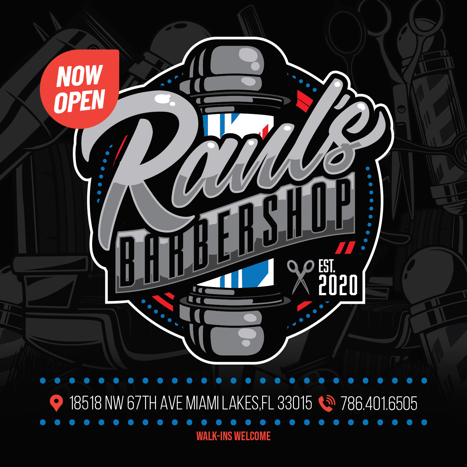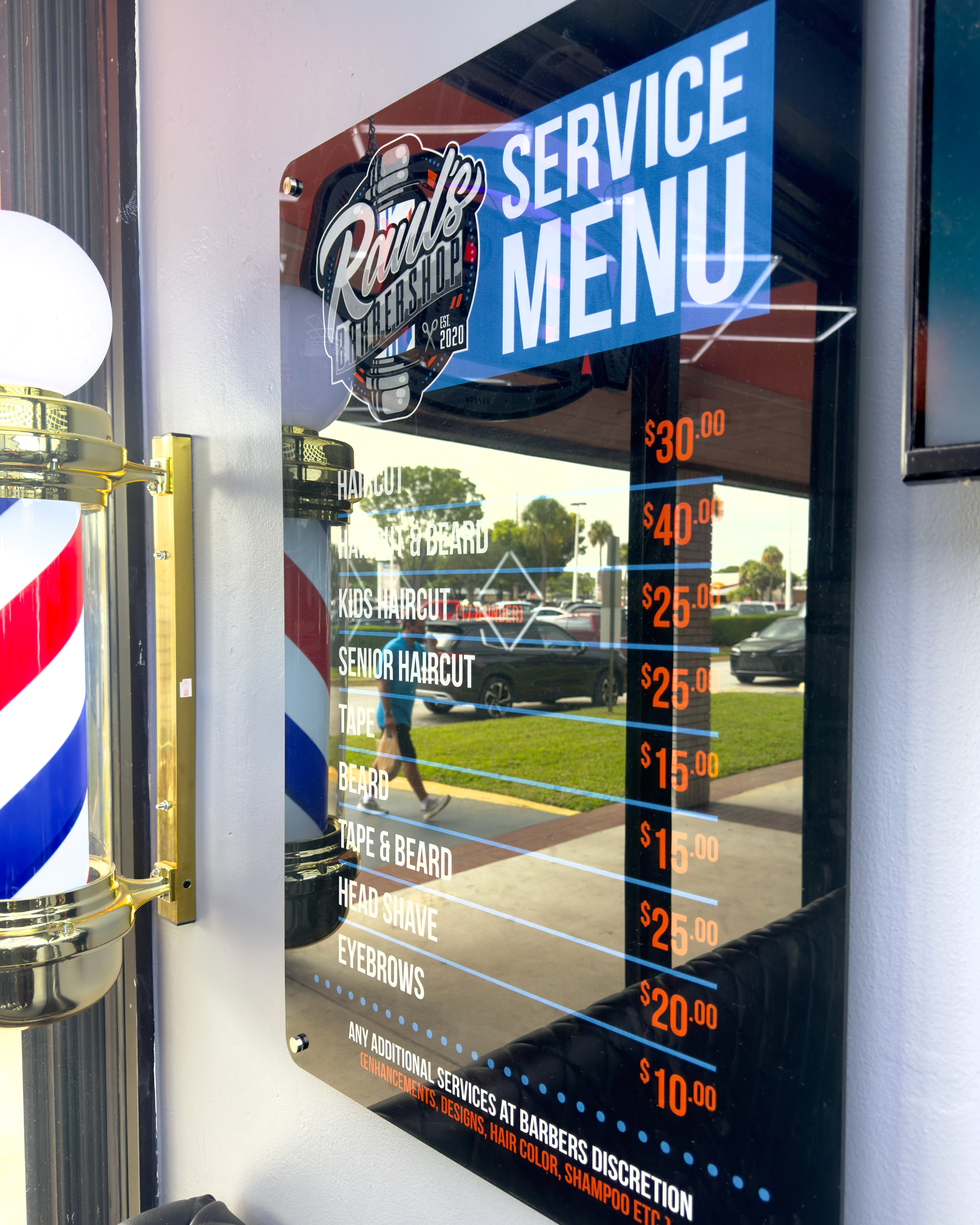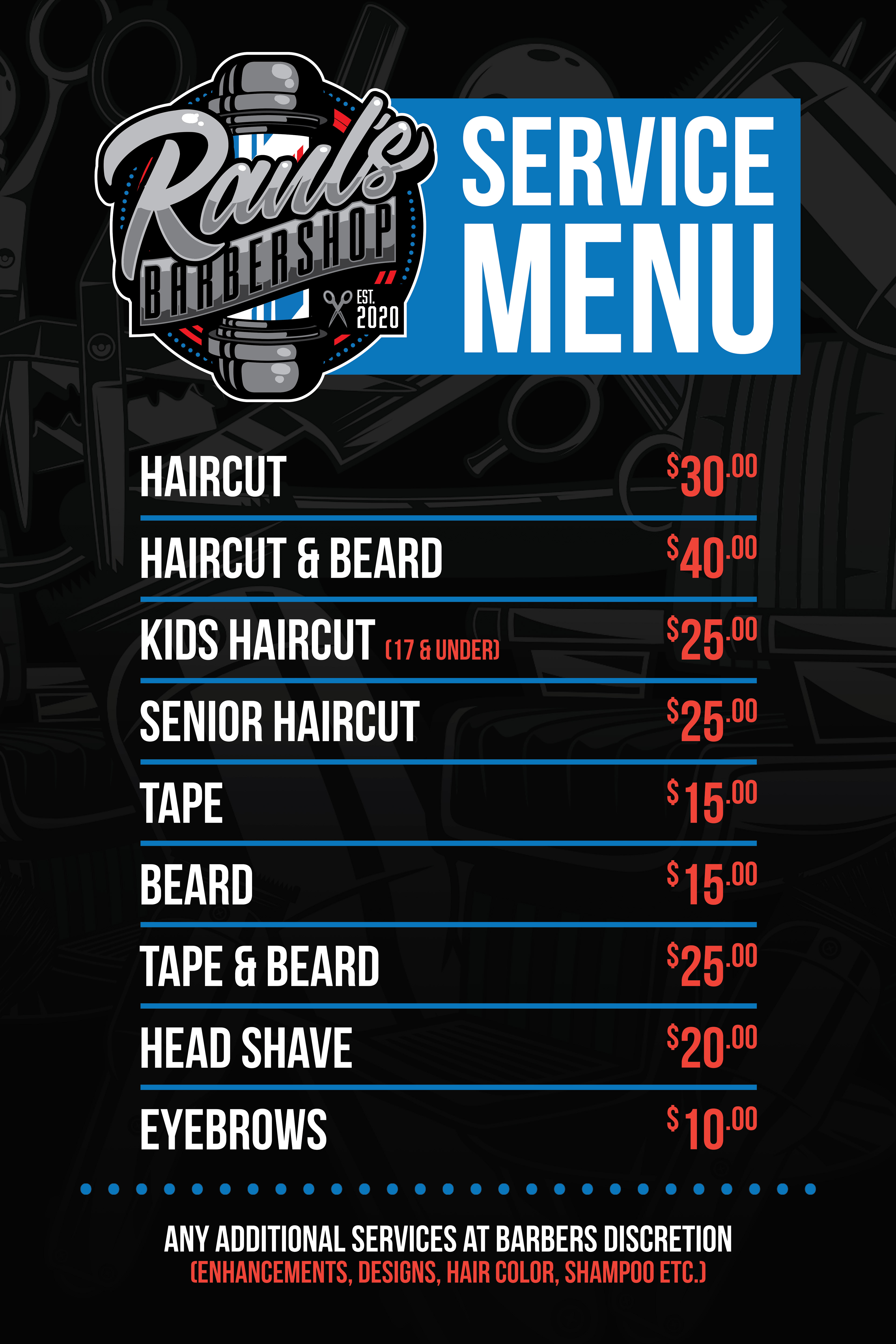 Full rebrand and creative direction for Raul’s Barbershop. Designed and produced every element in the shop, including custom barber capes, printed menu board, uniforms, and print media. A complete visual identity crafted to reflect Miami culture and barbershop tradition with a modern edge.
