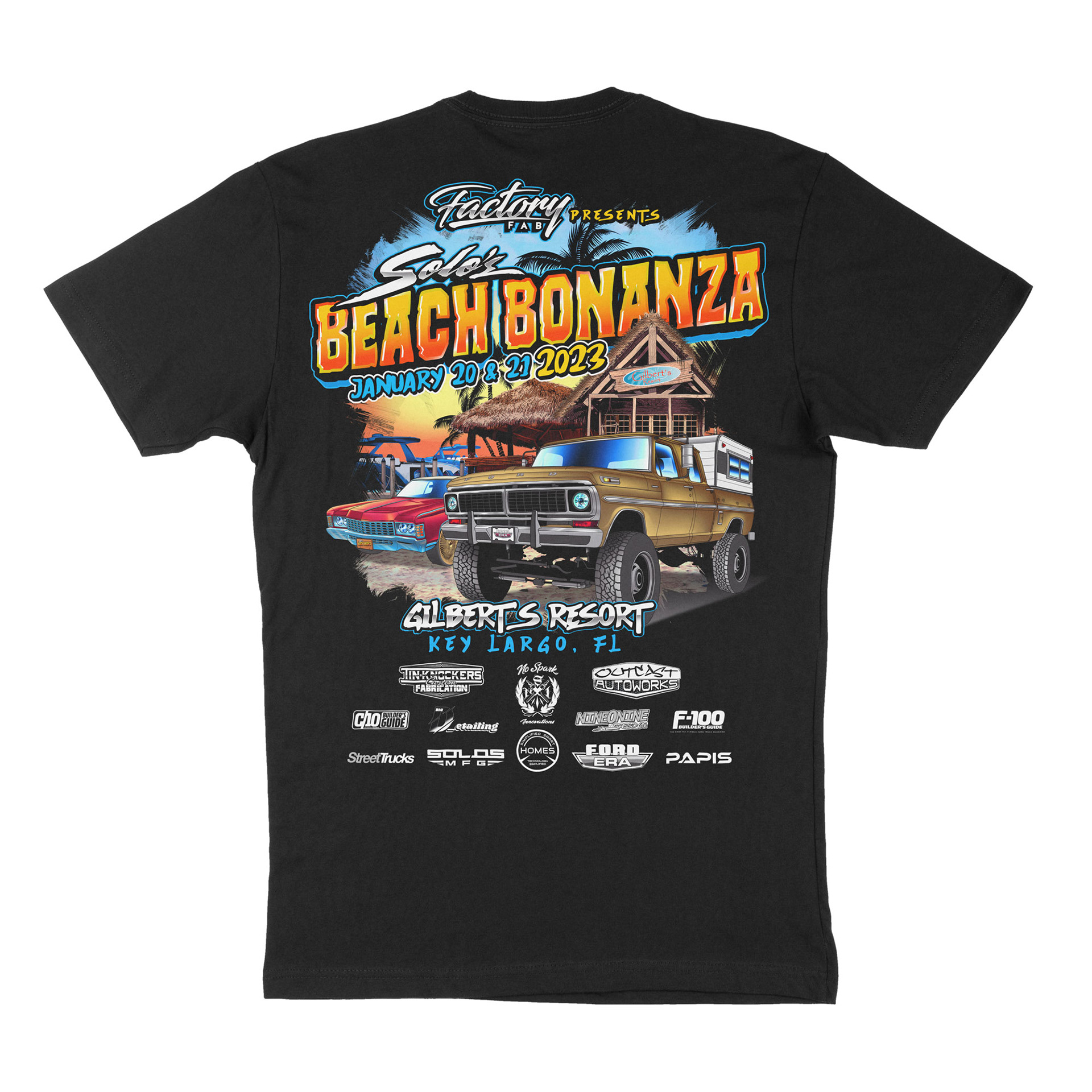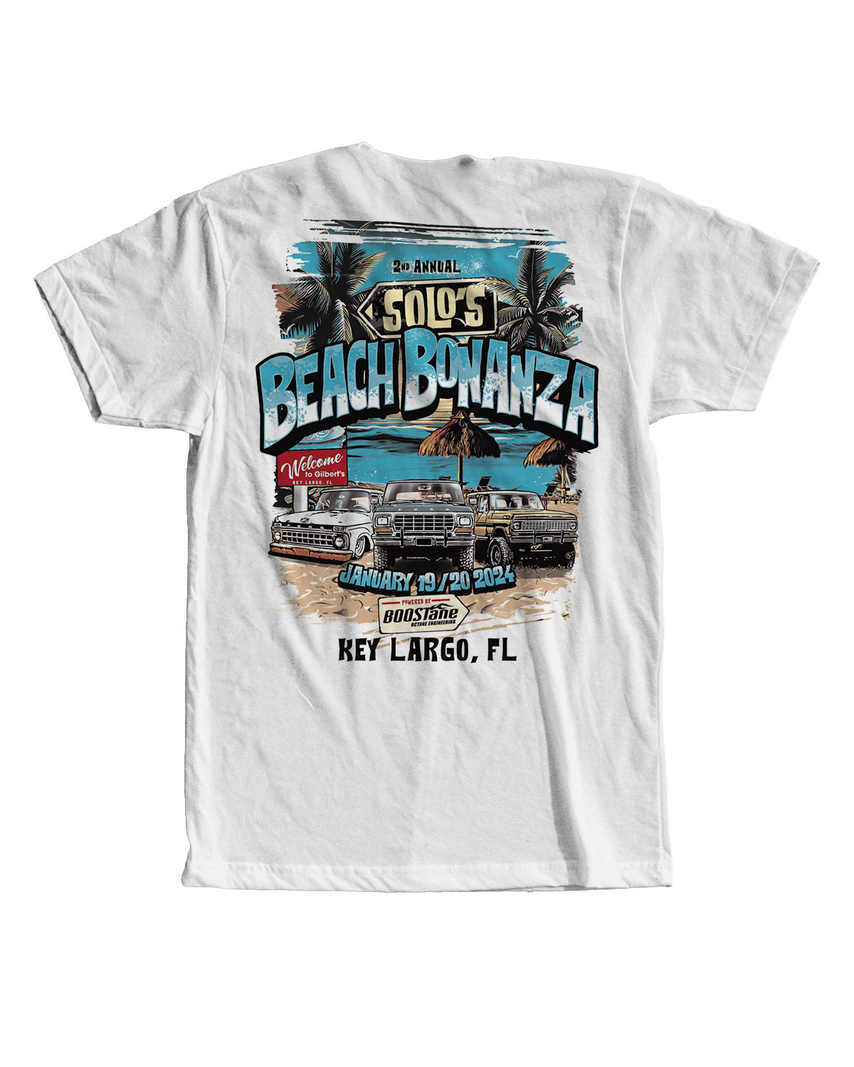 Creative direction and design for Solo’s Beach Bonanza car show. Developed the event branding, flyer, and typography to reflect the beach and street energy of South Florida car culture. Designed and screen-printed custom tees, creating merch that captured the event’s visual identity and vibe.